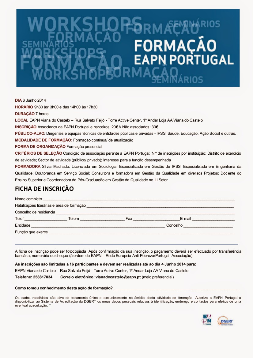 AÇÃO DE FORMAÇÃO, Viana do Castelo maio 29, 2014 Obter link Facebook Twitter Pinterest Email Outras aplicações + info: Hélder Pena Núcleo Distrital de Viana do Castelo EAPN Portugal / Rede Europeia Anti-Pobreza Rua Salvato Feijó – Torre Active Center - 1º Andar Loja AA 4900-415 Viana do Castelo Tel. +00351 258 817 034 vianadocastelo@eapn.pt www.eapn.pt