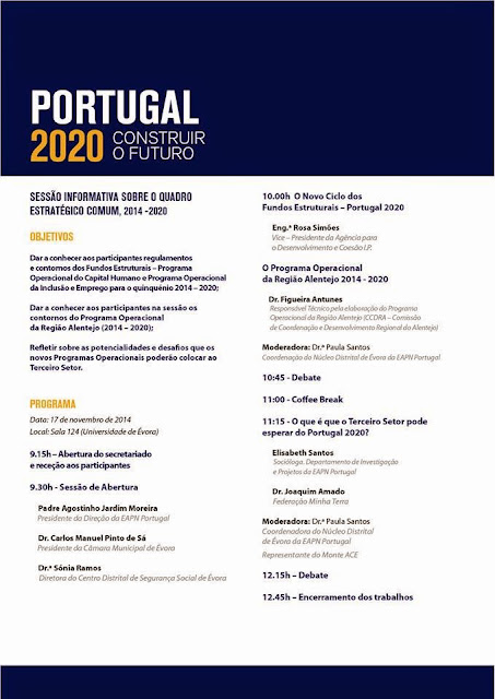 « O Núcleo Distrital de Évora da EAPN Portugal vai promover no próximo dia 17 de novembro a Sessão Informativa Portugal 2020 – Construir o Futuro, cujos objetivos são: