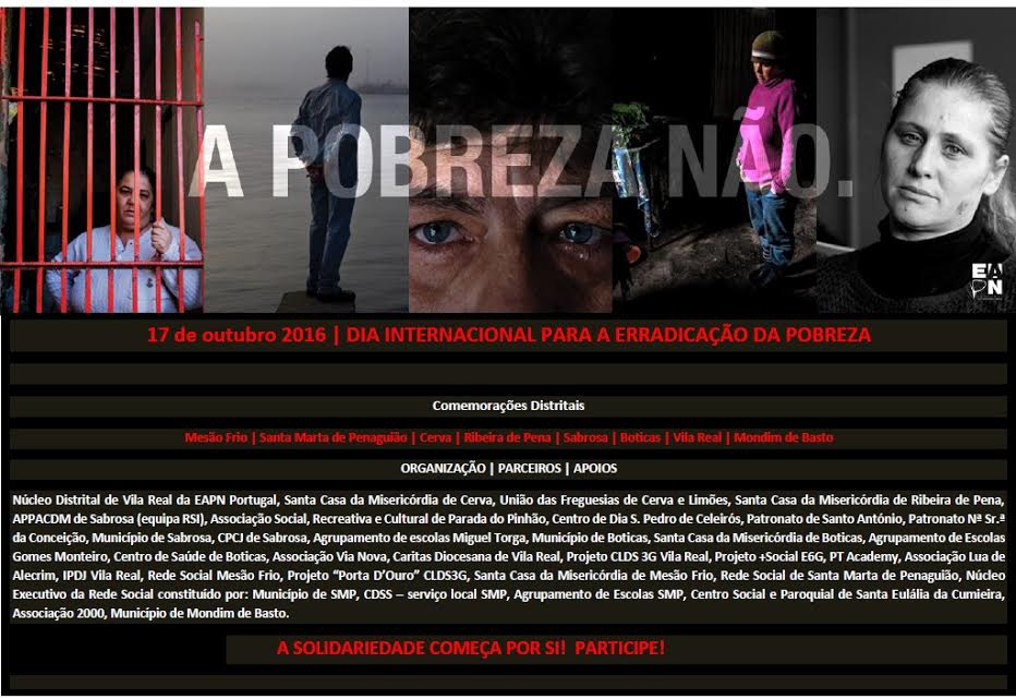 Dia Internacional para a Erradicação da Pobreza, Vila Real outubro 04, 2016 Obter link Facebook Twitter Pinterest Email Outras aplicações * VILA REAL já tem programa para assinalar a data *